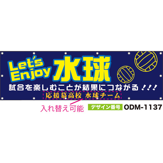 【別注】名入れ応援幕(四角型) Let's Enjoy 水球 試合を楽しむことが結果につながる! (紺) ODM-1138【受注生産】