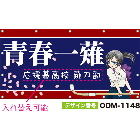 【別注】名入れ応援幕(横型) 青春一薙 (紺) ODM-1147【受注生産】