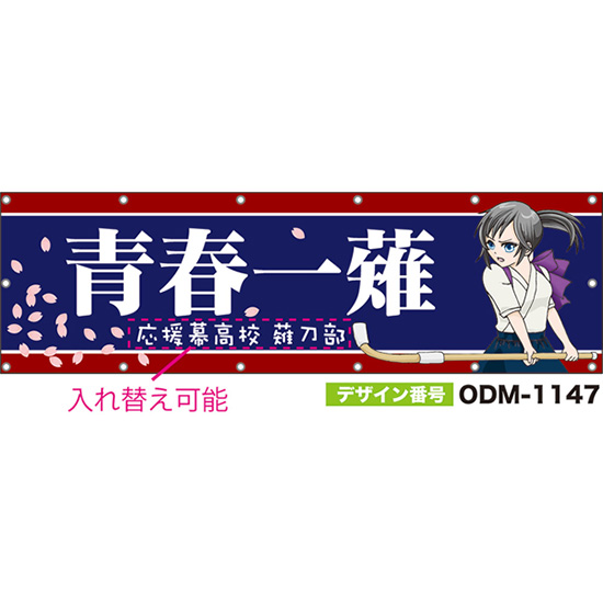 【別注】名入れ応援幕(四角型) 青春一薙 (紺) ODM-1148【受注生産】