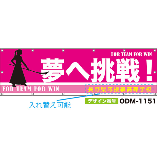 【別注】名入れ応援幕(四角型) 夢へ挑戦! FOR TEAM FOR WIN (ピンク) ODM-1152【受注生産】