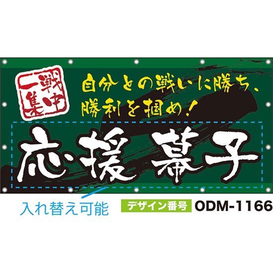 【別注】名入れ応援幕(横型) 一戦集中 自分との戦いに勝ち、勝利を掴め! (緑) ODM-1165【受注生産】