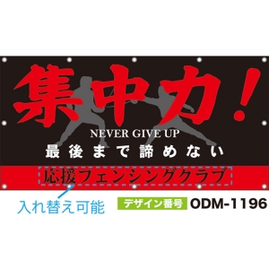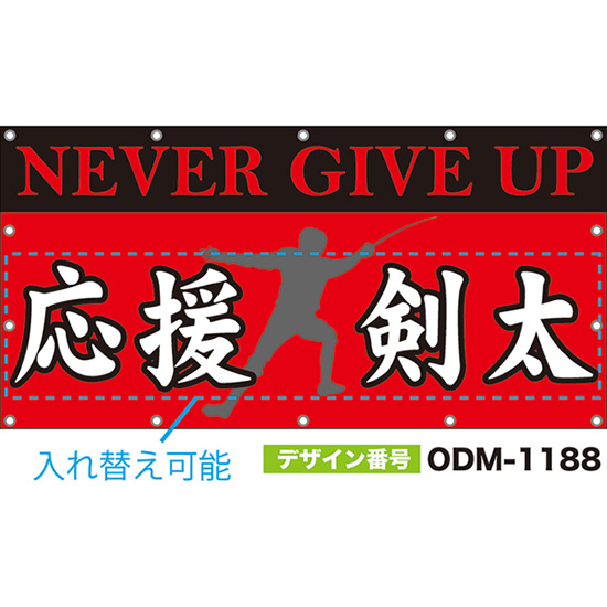 【別注】名入れ応援幕(横型) NEVER GIVE UP (赤) ODM-1187【受注生産】
