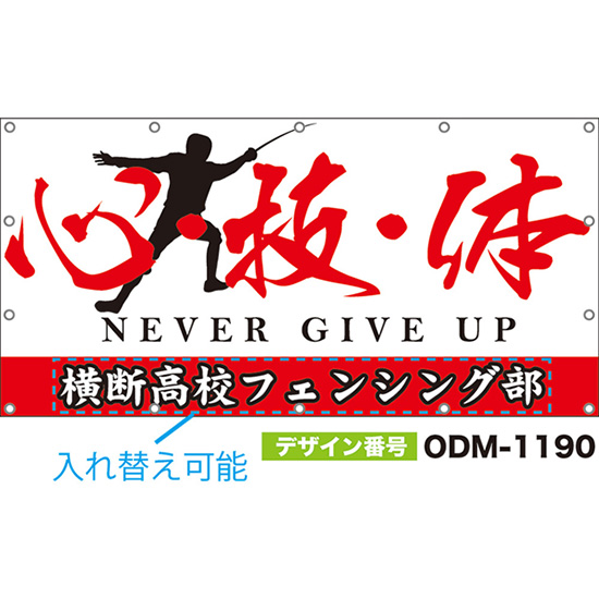 【別注】名入れ応援幕(横型) 心・技・体 NEVER GIVE UP (白) ODM-1189【受注生産】