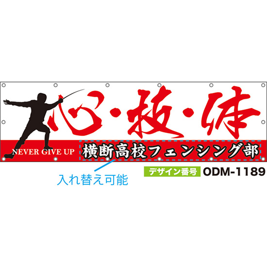 【別注】名入れ応援幕(四角型) 心・技・体 NEVER GIVE UP (白) ODM-1190【受注生産】