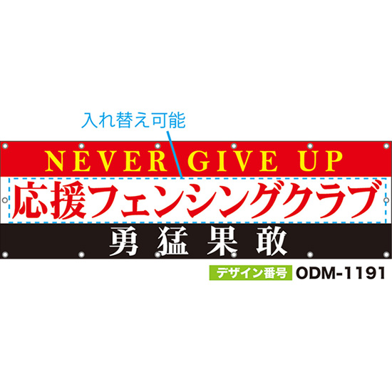 【別注】名入れ応援幕(四角型) NEVER GIVE UP 勇猛果敢 (赤・白・黒) ODM-1192【受注生産】