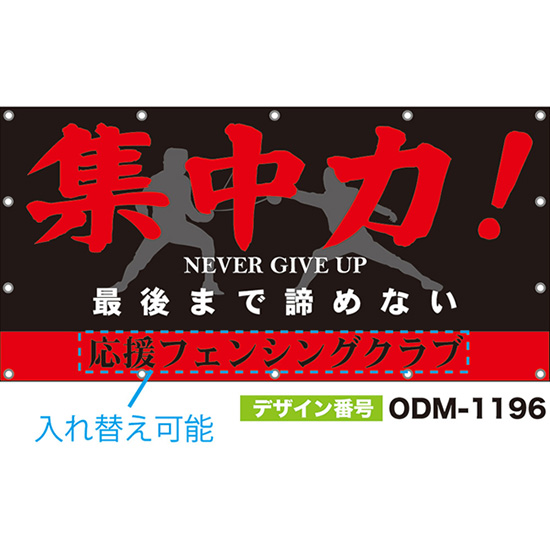 【別注】名入れ応援幕(横型) 集中力! NEVER GIVE UP 最後まで諦めない (黒) ODM-1195【受注生産】