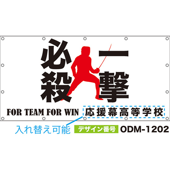 【別注】名入れ応援幕(横型) 一撃必殺 FOR TEAM FOR WIN (白) ODM-1201【受注生産】