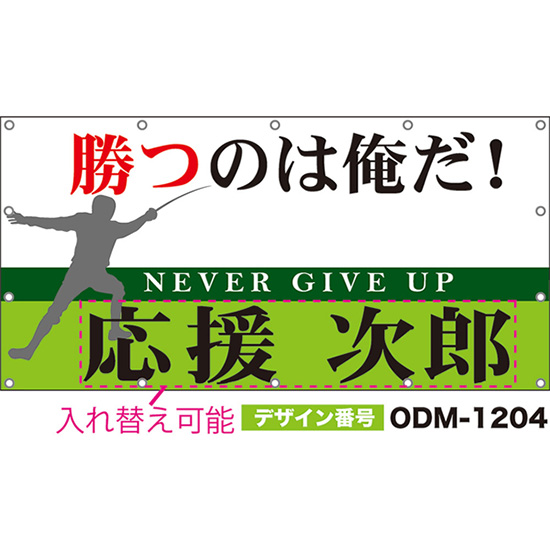 【別注】名入れ応援幕(横型) 勝つのは俺だ! NEVER GIVE UP (白・緑) ODM-1203【受注生産】