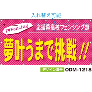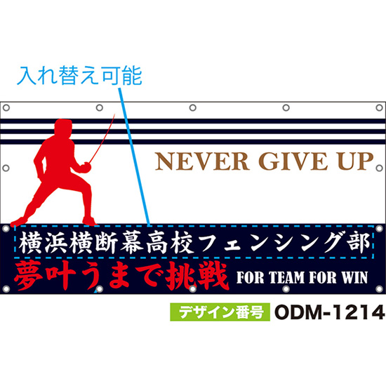 【別注】名入れ応援幕(横型) 夢叶うまで挑戦 FOR TEAM FOR WIN NEVER GIVE UP (白・紺) ODM-1213【受注生産】