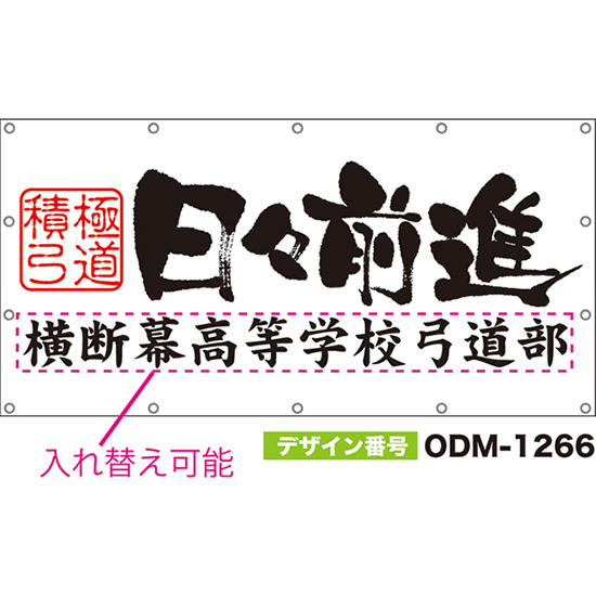【別注】名入れ応援幕(横型) 日々前進 積極弓道 (白) ODM-1265【受注生産】