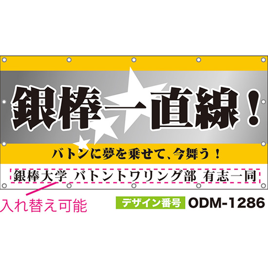 【別注】名入れ応援幕(横型) 銀棒一直線! バトンに夢を乗せて、今舞う! (グレー) ODM-1285【受注生産】