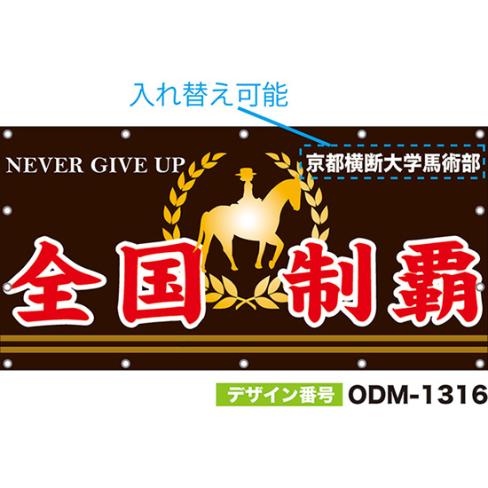 【別注】名入れ応援幕(横型) 全国制覇 NEVER GIVE UP (茶) ODM-1315【受注生産】
