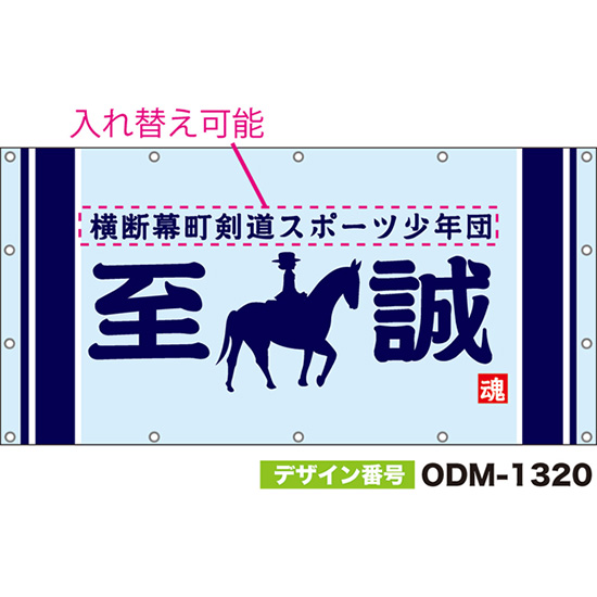【別注】名入れ応援幕(横型) 至誠 魂 (水色) ODM-1319【受注生産】