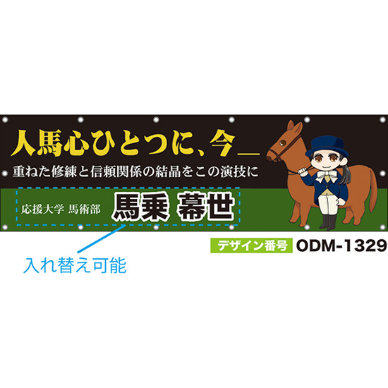 【別注】名入れ応援幕(四角型) 人馬心ひとつに、今 重ねた修練と信頼関係の結晶をこの演技に (黒) ODM-1330【受注生産】