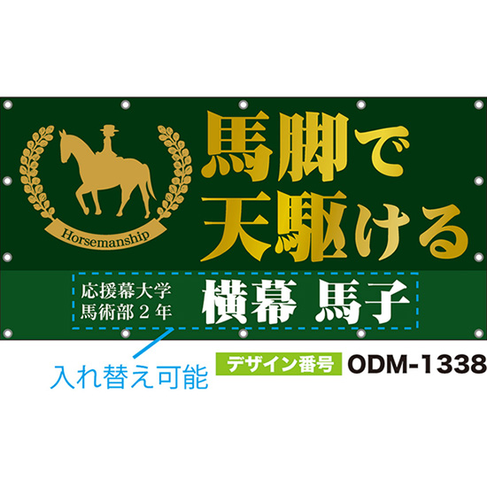 【別注】名入れ応援幕(横型) 馬脚で天駆ける Horsemanship (緑) ODM-1337【受注生産】