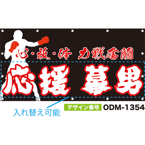 【別注】名入れ応援幕(横型) 心・技・体 力戦奮闘 (黒) ODM-1353【受注生産】