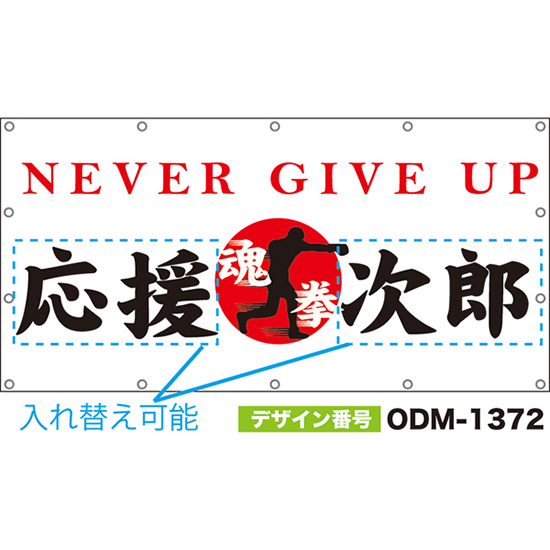 【別注】名入れ応援幕(横型) NEVER GIVE UP 魂 拳 (白) ODM-1371【受注生産】