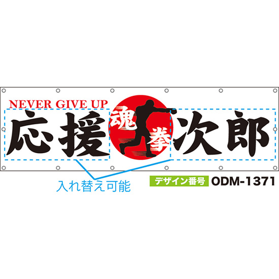 【別注】名入れ応援幕(四角型) NEVER GIVE UP 魂 拳 (白) ODM-1372【受注生産】