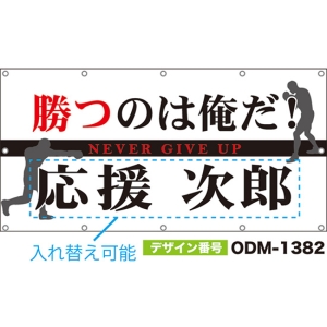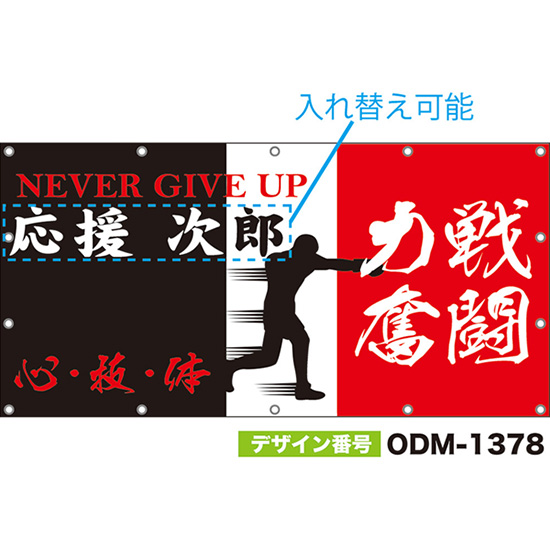 【別注】名入れ応援幕(横型) 力戦奮闘 NEVER GIVE UP 心・技・体 (黒・赤) ODM-1377【受注生産】