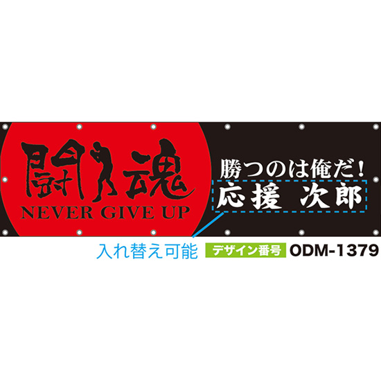 【別注】名入れ応援幕(四角型) 闘魂 NEVER GIVE UP 勝つのは俺だ! (黒・赤) ODM-1380【受注生産】