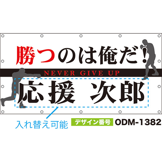 【別注】名入れ応援幕(横型) 勝つのは俺だ! NEVER GIVE UP (白) ODM-1381【受注生産】