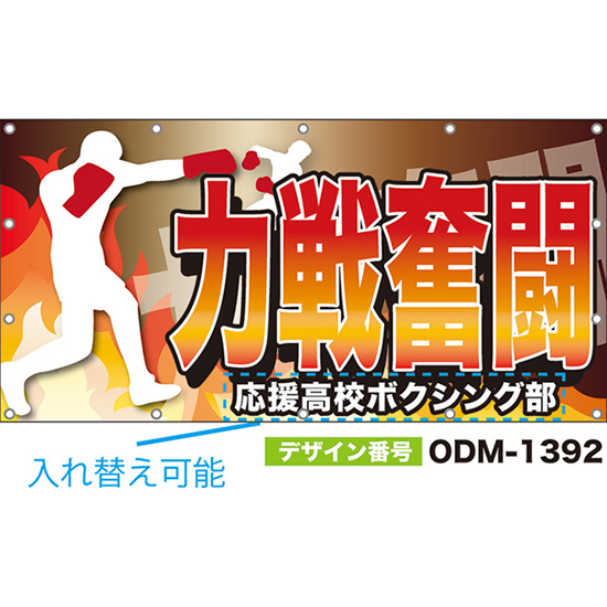 【別注】名入れ応援幕(横型) 力戦奮闘 (茶) ODM-1391【受注生産】