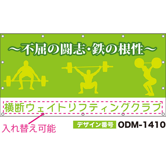 【別注】名入れ応援幕(横型) 不屈の闘志・鉄の根性 (黄緑) ODM-1409【受注生産】