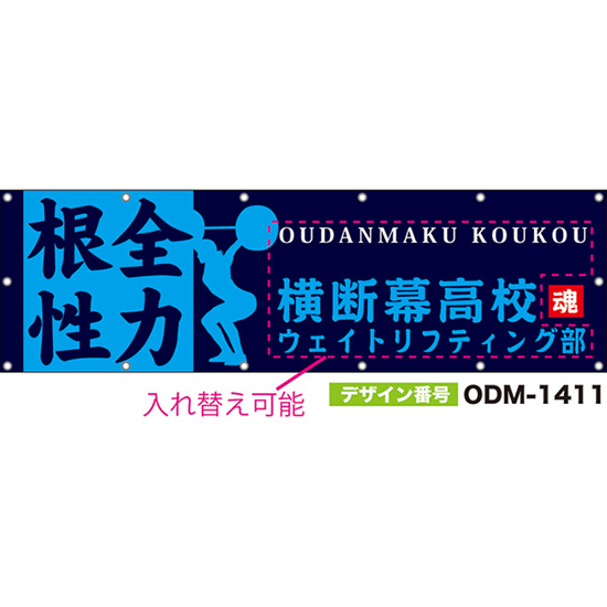 【別注】名入れ応援幕(四角型) 全力根性 (紺) ODM-1412【受注生産】
