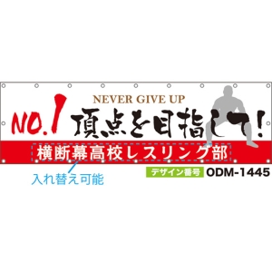 【別注】名入れ応援幕(横型) 目指せ頂点 NO.1 不撓不屈の精神力 (赤) ODM-1437【受注生産】