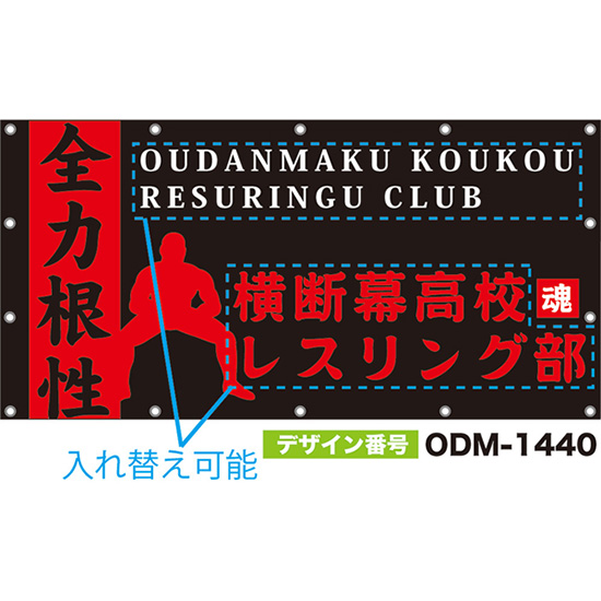 【別注】名入れ応援幕(横型) 全力根性 (黒) ODM-1439【受注生産】