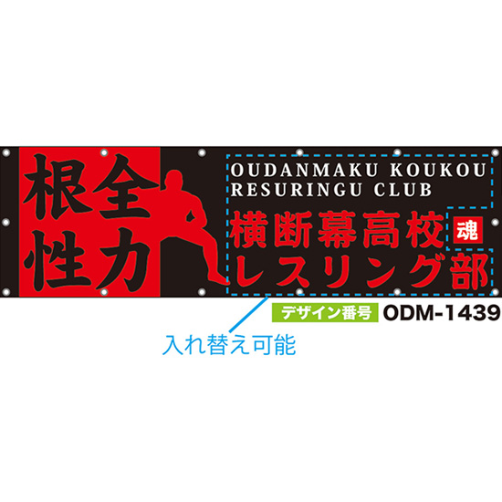 【別注】名入れ応援幕(四角型) 全力根性 (黒) ODM-1440【受注生産】