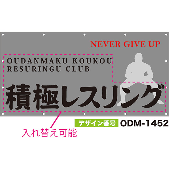 【別注】名入れ応援幕(横型) NEVER GIVE UP (グレー) ODM-1451【受注生産】
