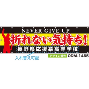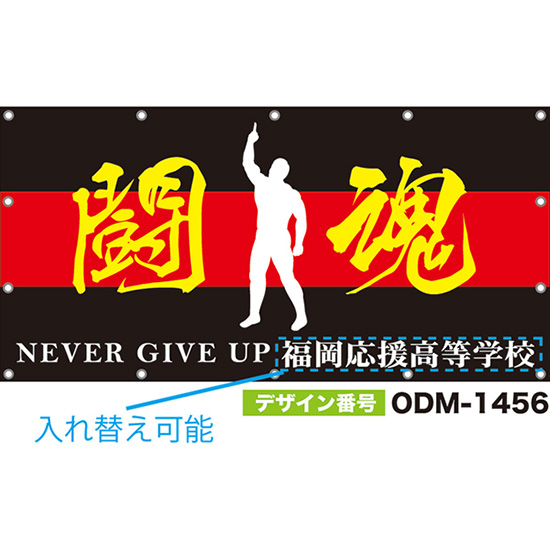 【別注】名入れ応援幕(横型) 闘魂 NEVER GIVE UP (黒) ODM-1455【受注生産】