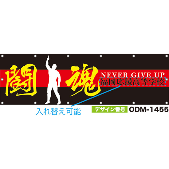 【別注】名入れ応援幕(四角型) 闘魂 NEVER GIVE UP (黒) ODM-1456【受注生産】