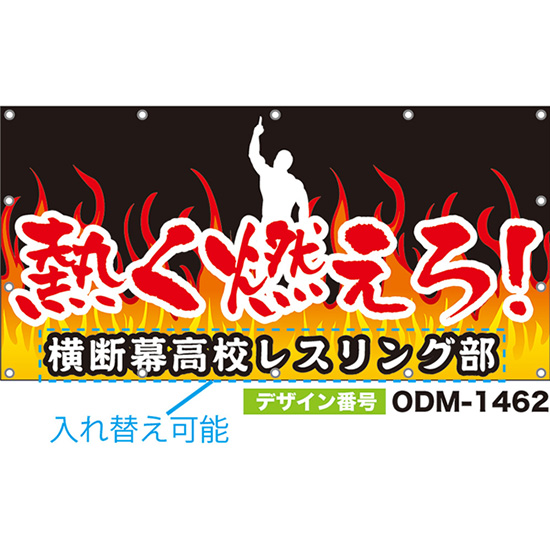 【別注】名入れ応援幕(横型) 熱く燃えろ! (黒) ODM-1461【受注生産】