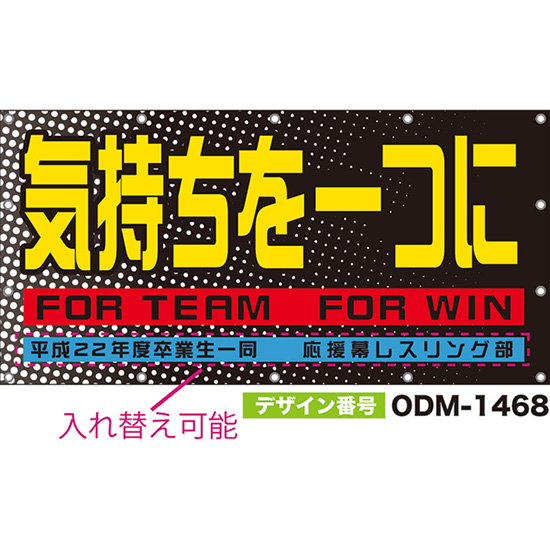 【別注】名入れ応援幕(横型) 気持ちを一つに FOR TEAM FOR WIN (黒) ODM-1467【受注生産】