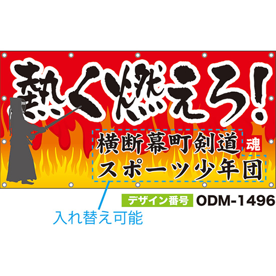 【別注】名入れ応援幕(横型) 熱く燃えろ! (赤) ODM-1495【受注生産】
