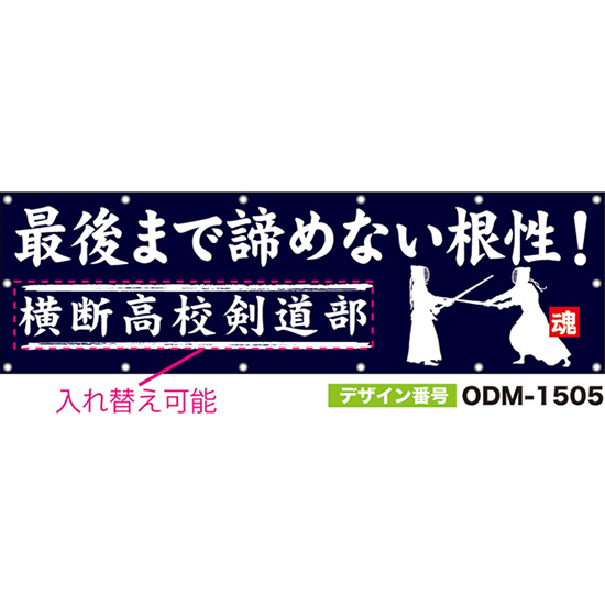 【別注】名入れ応援幕(四角型) 最後まで諦めない根性! (紺) ODM-1506【受注生産】