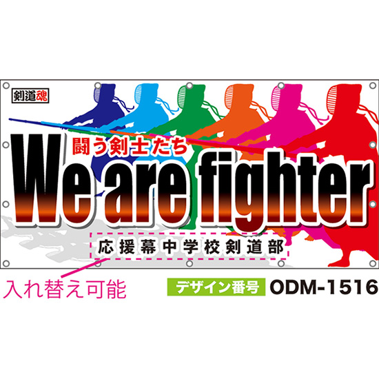 【別注】名入れ応援幕(横型) We are fighter 剣道魂 (白) ODM-1515【受注生産】