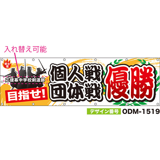 【別注】名入れ応援幕(四角型) 目指せ!個人戦団体戦優勝 剣士魂 (白) ODM-1520【受注生産】