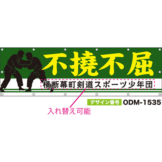 【別注】名入れ応援幕(四角型) 不撓不屈 (緑) ODM-1536【受注生産】