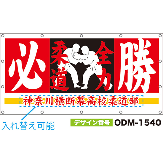 【別注】名入れ応援幕(横型) 必勝 全力柔道 (赤) ODM-1539【受注生産】