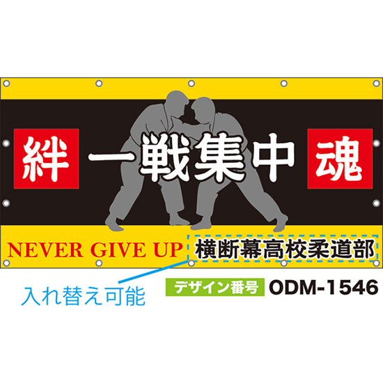 【別注】名入れ応援幕(横型) 一戦集中 絆 魂 (黒・黄) ODM-1545【受注生産】