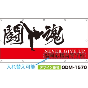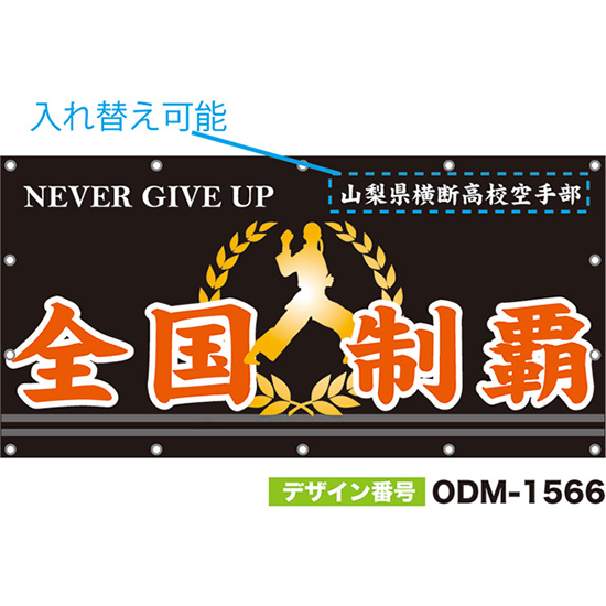 【別注】名入れ応援幕(横型) 全国制覇 NEVER GIVE UP (黒) ODM-1565【受注生産】