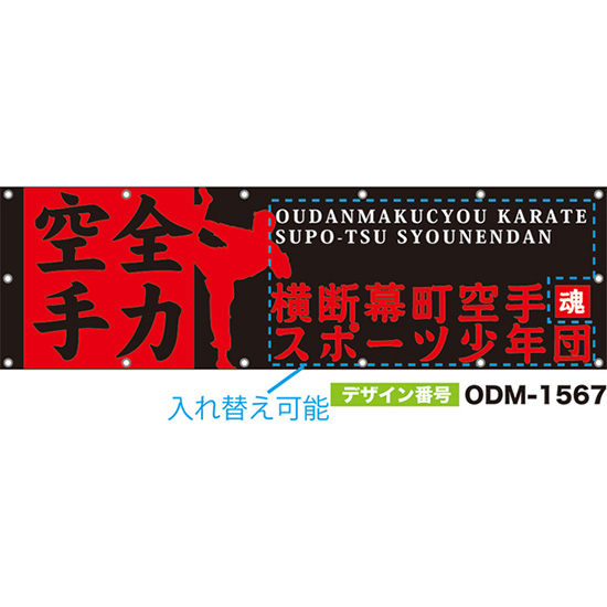 【別注】名入れ応援幕(四角型) 全力空手 (黒) ODM-1568【受注生産】