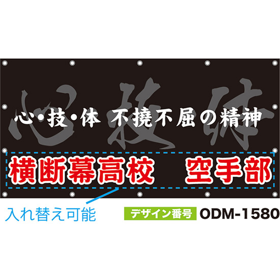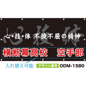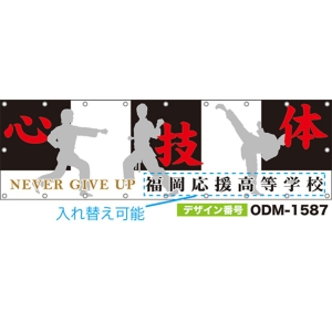 【別注】名入れ応援幕(横型) 心・技・体 不撓不屈の精神 (黒) ODM-1579【受注生産】
