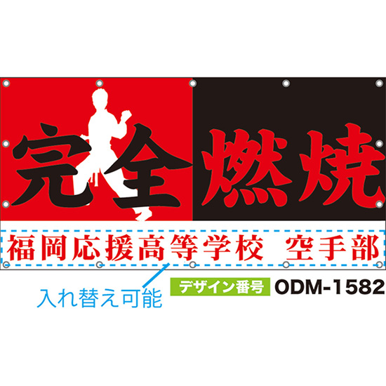 【別注】名入れ応援幕(横型) 完全燃焼 (黒・赤) ODM-1581【受注生産】
