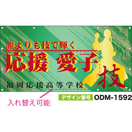 【別注】名入れ応援幕(横型) 誰よりも技で輝く (緑) ODM-1591【受注生産】