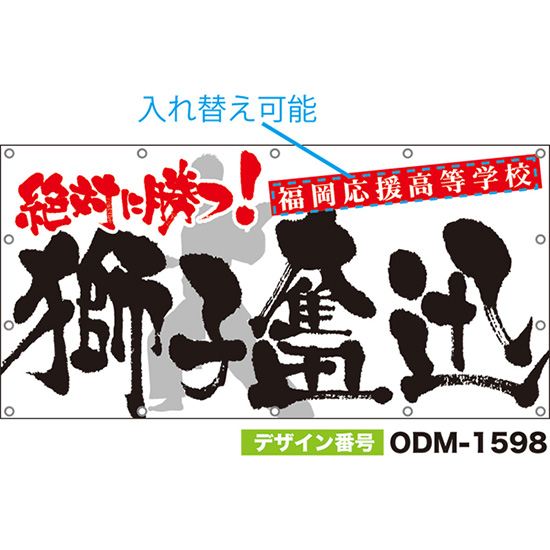 【別注】名入れ応援幕(横型) 獅子奮迅 (白) ODM-1597【受注生産】