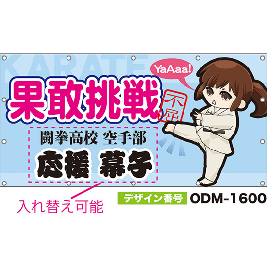 【別注】名入れ応援幕(横型) 果敢挑戦 不屈 KARATE (水色) ODM-1599【受注生産】